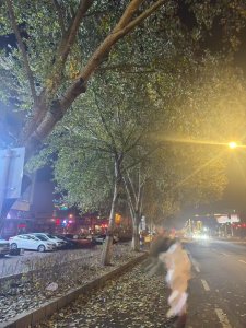 刮台风,大树叉子扑通就掉跟前了。还好低头玩手机走得慢